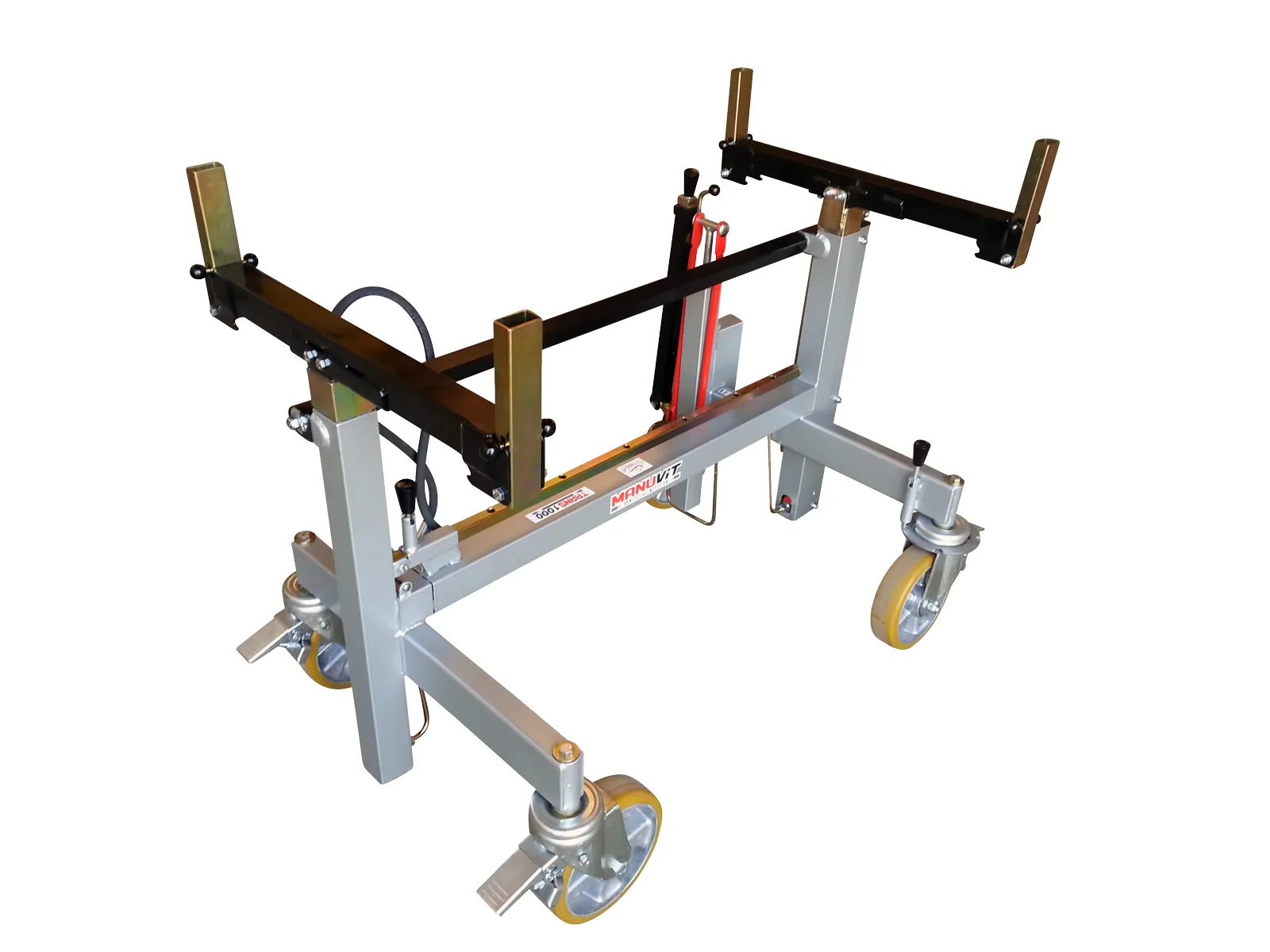 La géométrie variable permet de régler la hauteur (770/1200 mm) et la longueur (1050/1860 mm) du chariot pour l’adapter à l’utilisation souhaitée. Levée par 2 vérins hydrauliques manuels avec une commande à bras. Équipé de 3 roulettes pivotantes à frein et une directionnelle avec verrouillage sur 2 positions pour déplacement longitudinal ou transversal. Levier télescopique actionnant la levée. Équipé de ranchers escamotables pour bloquer les charges. Pièces détachées disponibles en stock. En sur-mesure : divers accessoires en fonction de la charge à manipuler, élévation électrique, longueur jusqu’à 5 m.