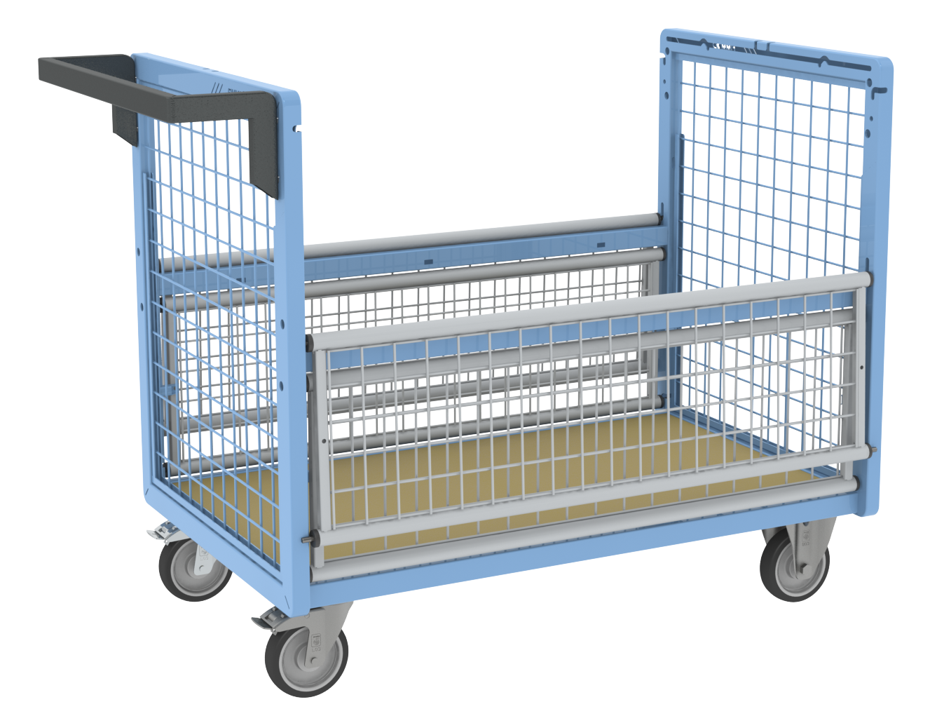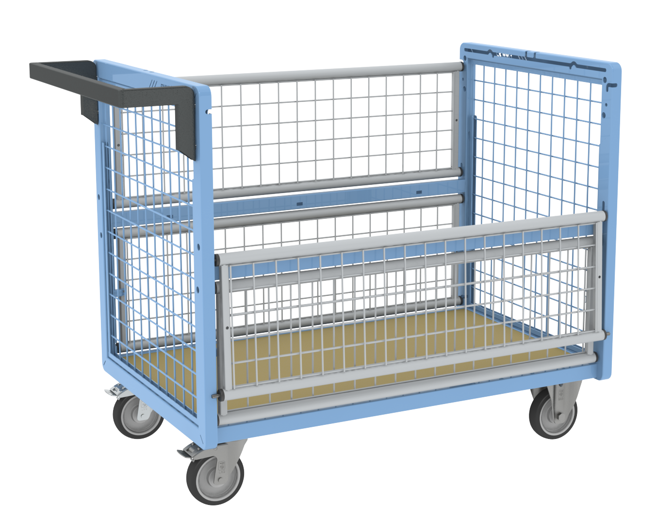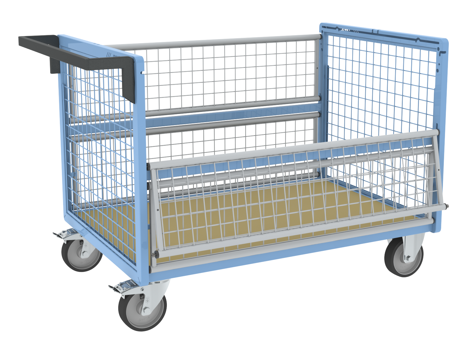 Dans la logistique ou l’industrie, les opérateurs manipulent des charges volumineuses et fragiles sur site. Les demi-panneaux rabattables facilitent le chargement sans effort. Ce modèle garantit une manutention silencieuse et sûre, tout en optimisant le stockage temporaire des marchandises.