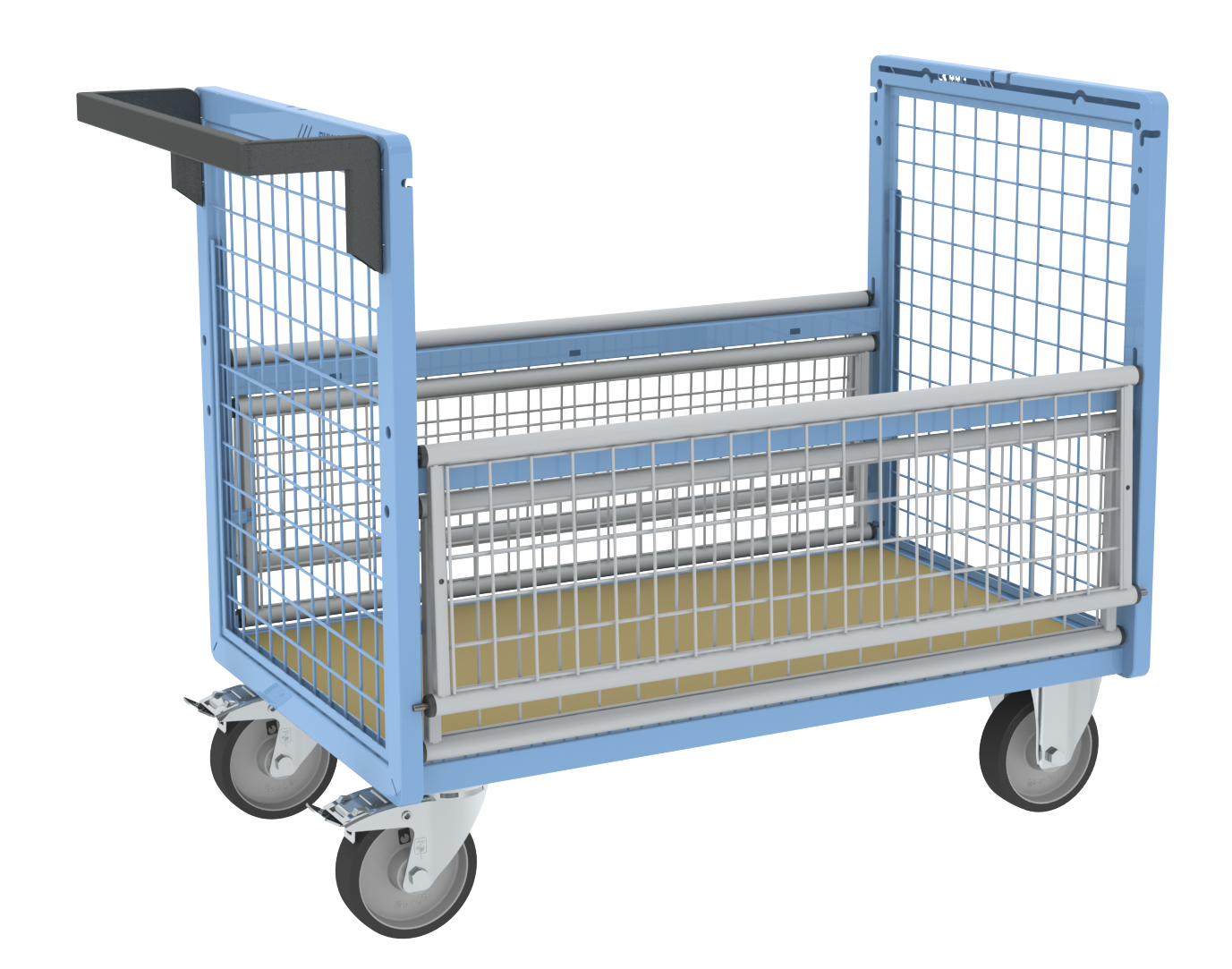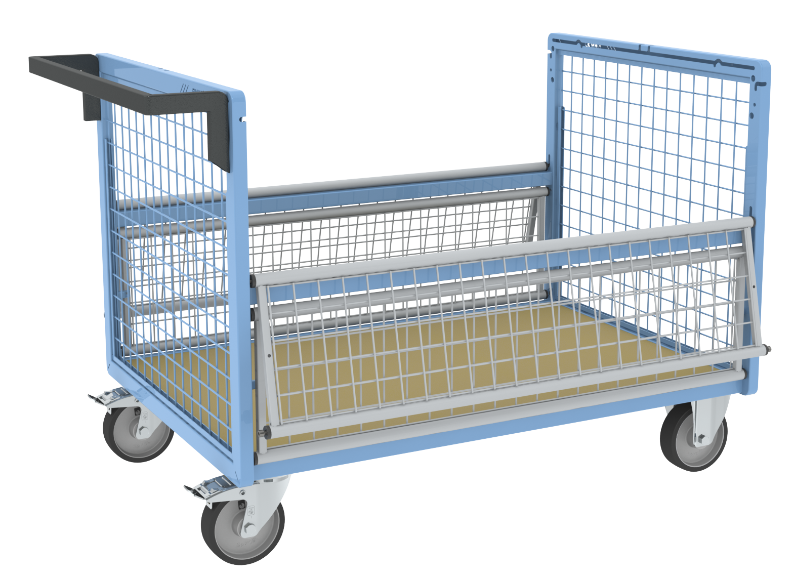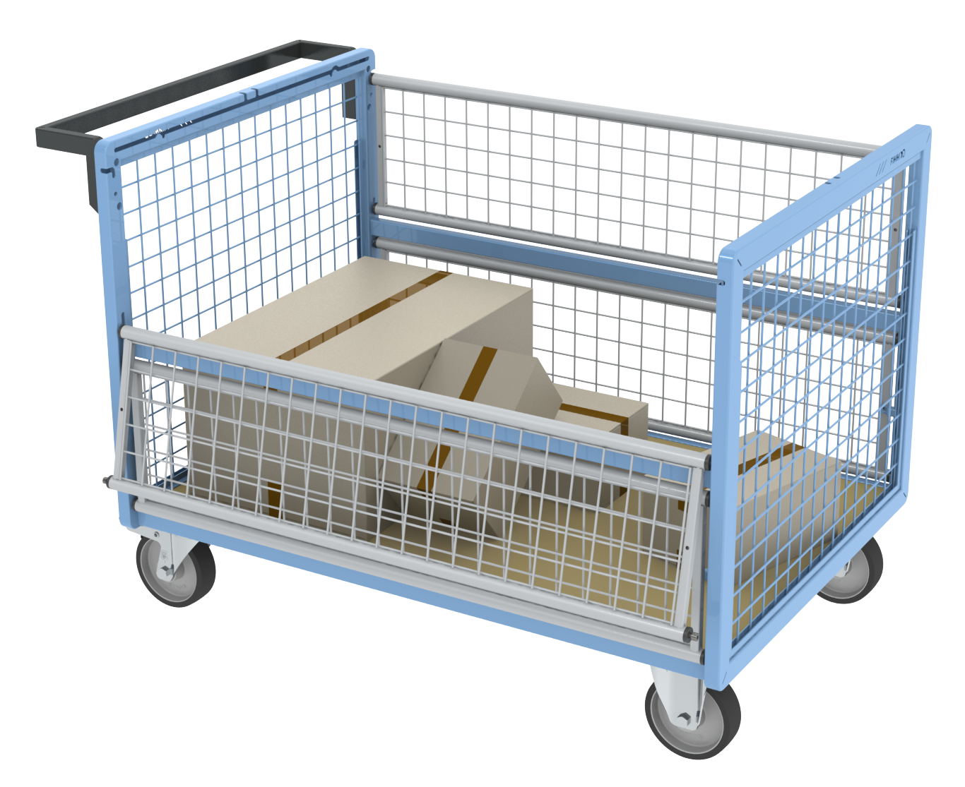Dans la logistique ou l’industrie, les opérateurs manipulent des charges volumineuses et fragiles sur site. Les demi-panneaux rabattables facilitent le chargement sans effort. Ce modèle garantit une manutention silencieuse et sûre, tout en optimisant le stockage temporaire des marchandises.