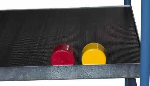 Etagère en bois mélaminé recouvert de caoutchouc strié antidérapant, CU 100 kg. Compatible avec servantes multi-niveaux 500 kg et remorques monotraces 500 kg.