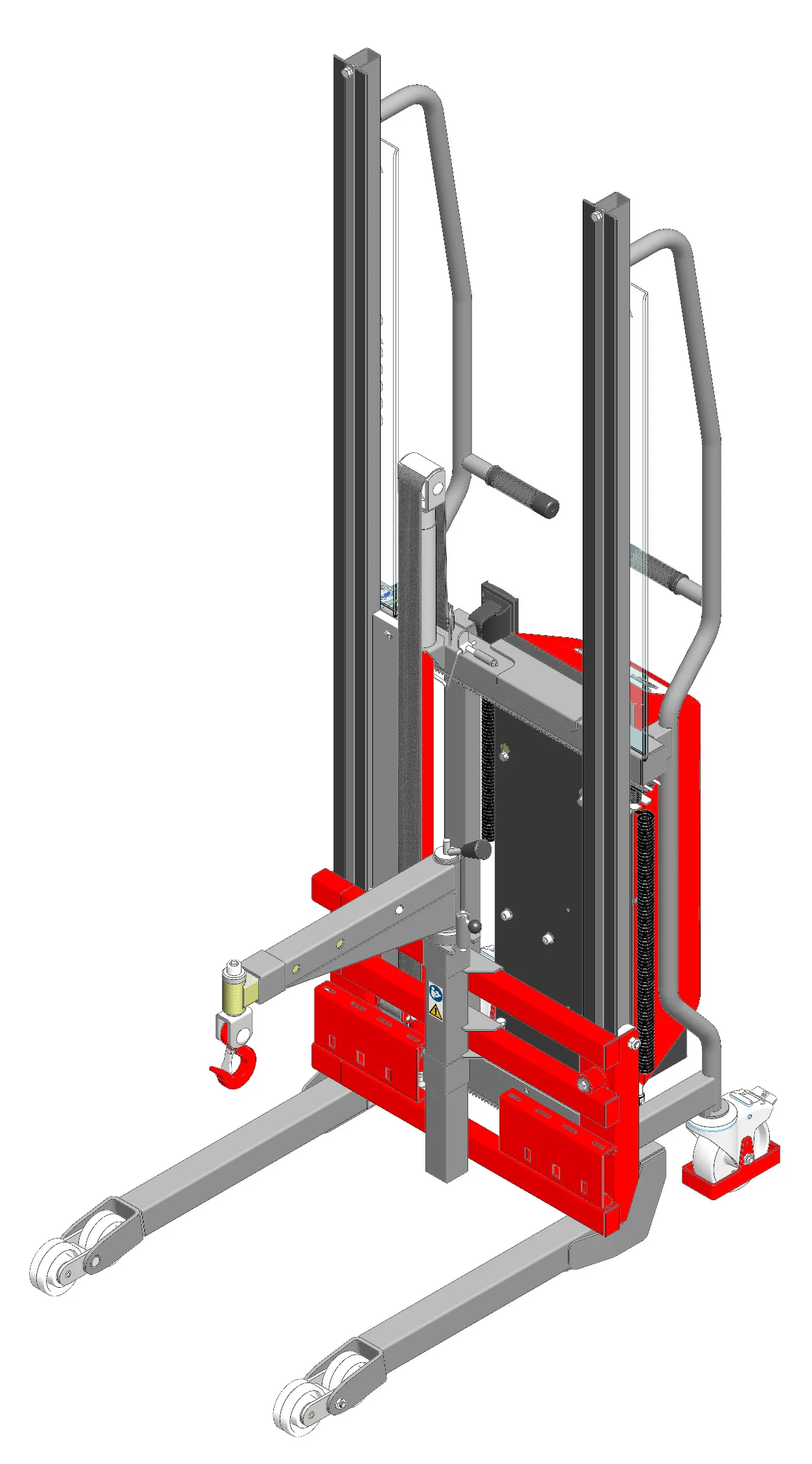 Équipé d’une potence pivotante : Ø crochet : 32 mm. 3 positions du crochet : à 505 mm des mâts capacité 150 kg, à 625 mm des mâts capacité 100 kg, à 715 mm des mâts capacité 50 kg ou à 535 mm des mâts capacité 400 kg, à 655 mm des mâts capacité 200 kg, à 745 mm des mâts capacité 100 kg selon modèle. Capacité donnée pour une charge positionnée à 350 ou 500 mm des mâts selon norme ISO 3691-5. Performance : construction robuste adaptée à des utilisations intensives. Vitesse de levée de 110 à 180 mm/s selon les modèles (vitesse de levée programmable selon les modèles). Autonomie de 10 à 25h avec 10 cycles/h pour une charge de 600 kg. Chargeur 24 Vcc incorporé. Sécurité : géométrie variable permettant d’écarter les longerons pour une meilleure stabilité. Roues arrières équipées d’une protection des pieds et de frein. Dispositif permettant d’éviter le renversement du gerbeur en cas d’obstacle sur la course de descente. Conformes à la directive machine 2006/42/CE et à la norme ISO 3691-5. Entretien et garantie : garantie 3 ans hors pièces d’usure. Composants disponibles sur stock. SAV et entretien dans notre usine de Normandie.