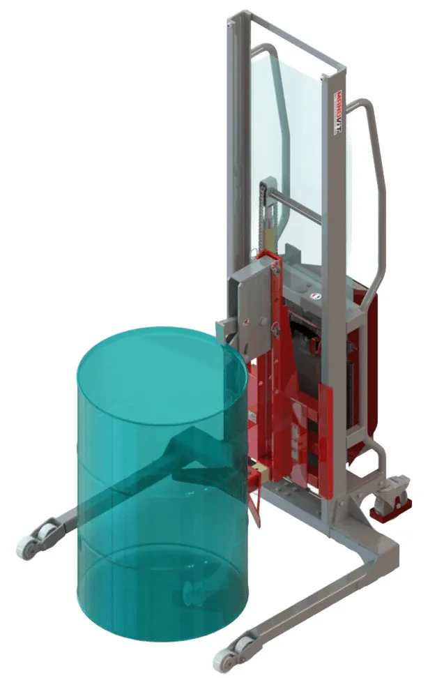 Gerbeurs Levfix à levée électrique avec pince automatique pour fût 120 à 300 kg