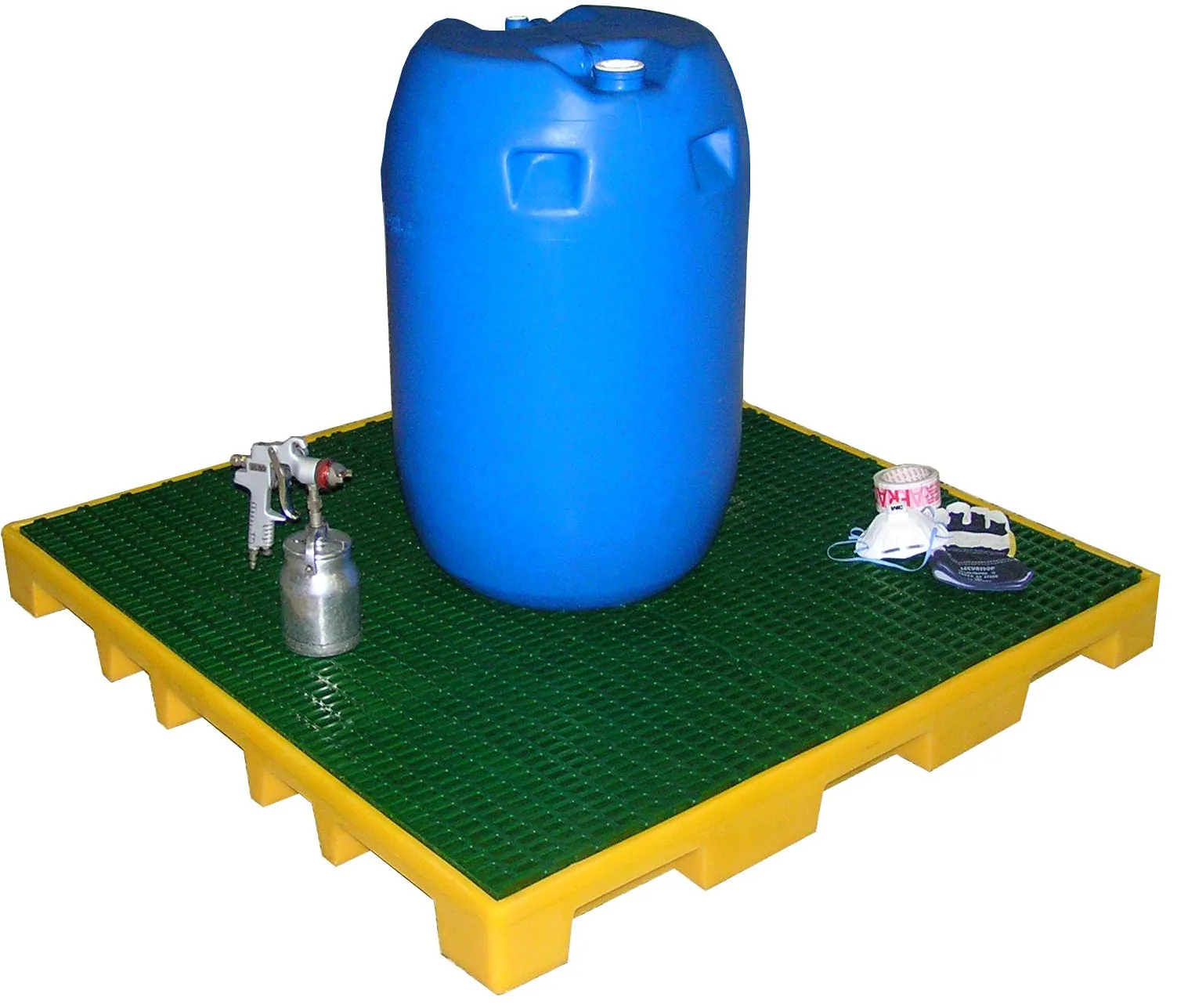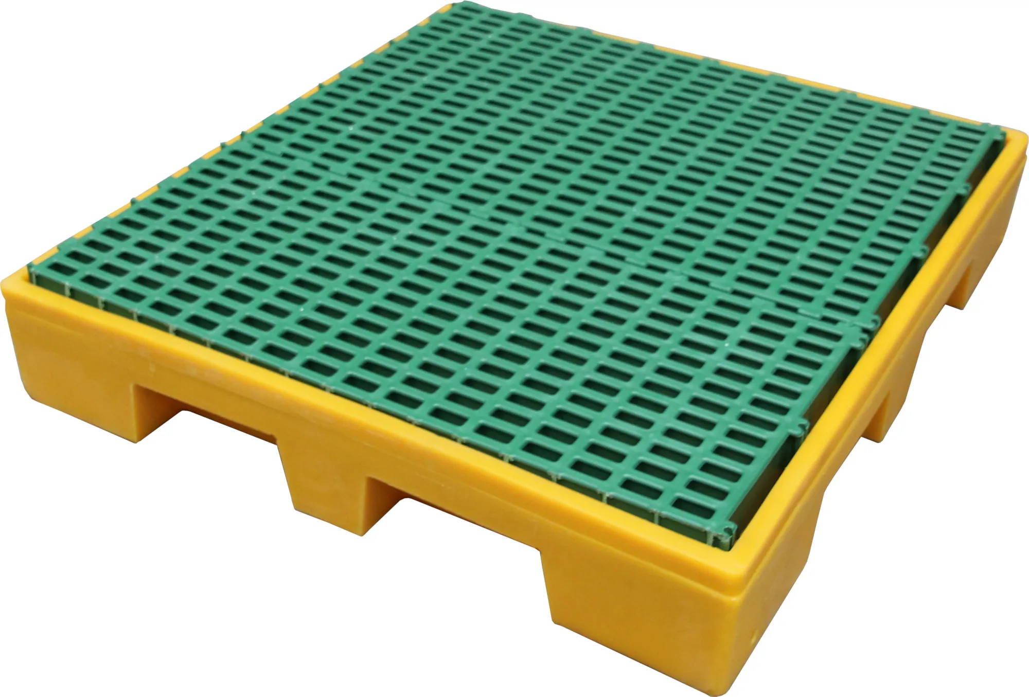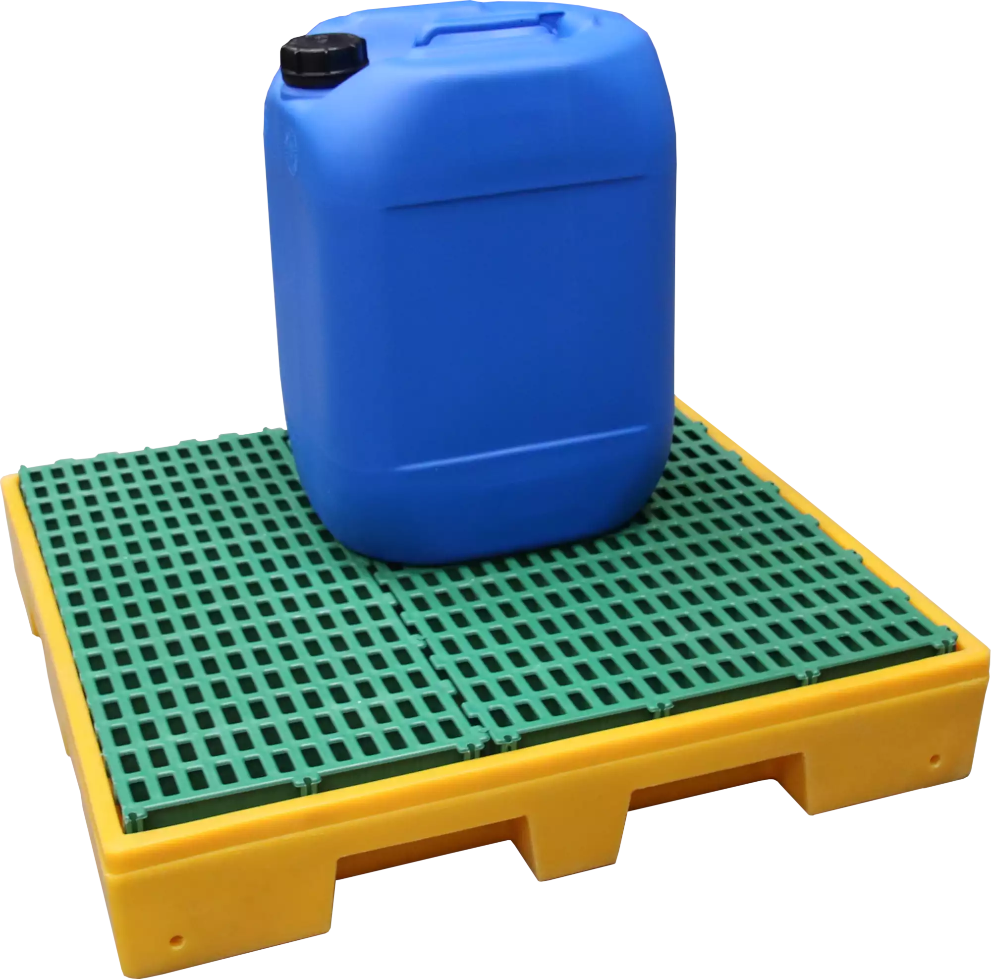 Bac rétention modulaire PEHD transvasement produits corrosifs, facile à nettoyer, faible hauteur, connectable et résistant.