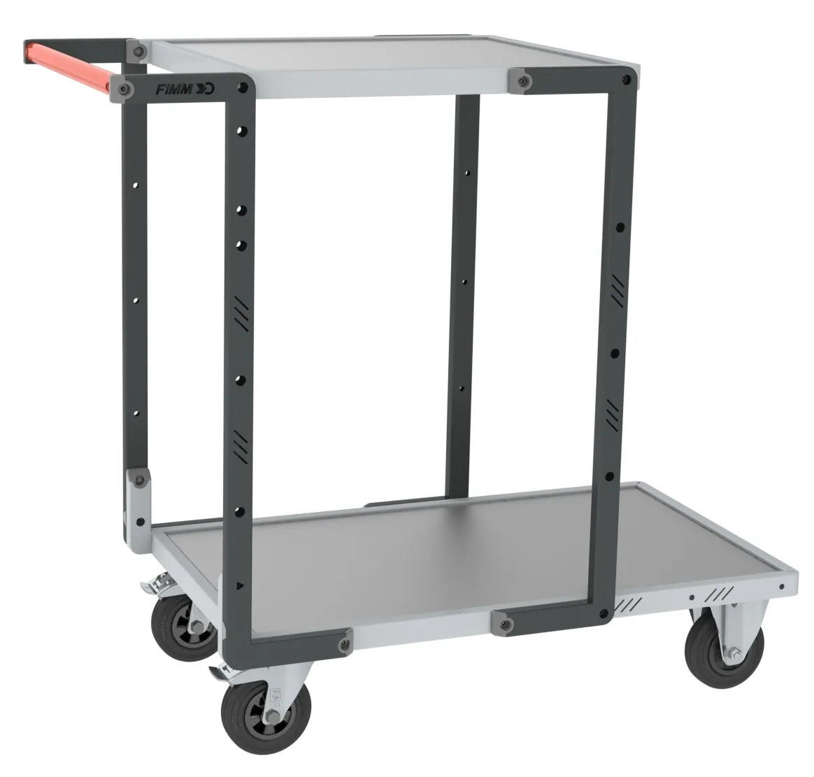 Conception robuste avec châssis en tube de 35 × 20 mm, renforts sous plateau et plateaux tôle encastrés. Dossier fixé au plateau par 3 points garantissant la longévité de l’assemblage dans le temps. Conception évolutive permettant de rajouter un plateau dans un second temps. Surface de pose optimisée grâce à une poignée positionnée dans l’alignement du plateau. Plateaux en tôle galvanisée réversible (face avec ou sans rebord de 16 mm) d’épaisseur 2 mm adaptés aux milieux corrosifs. Charge utile du plateau supérieur (et intermédiaire) limitée à 90 kg. Ajustement possible du plateau intermédiaire sur 3 niveaux différents, au pas de 175 mm. Poignée ergonomique à hauteur, en tube Ø 28 mm pour une bonne prise en main. Pour faciliter le chargement, les montants avant peuvent être reculés de façon symétrique ou asymétrique. 2 roues fixes + 2 pivotantes à frein conformément à la norme EN 1757. Conception démontable facilitant la réparation. Composants disponibles sur stock.