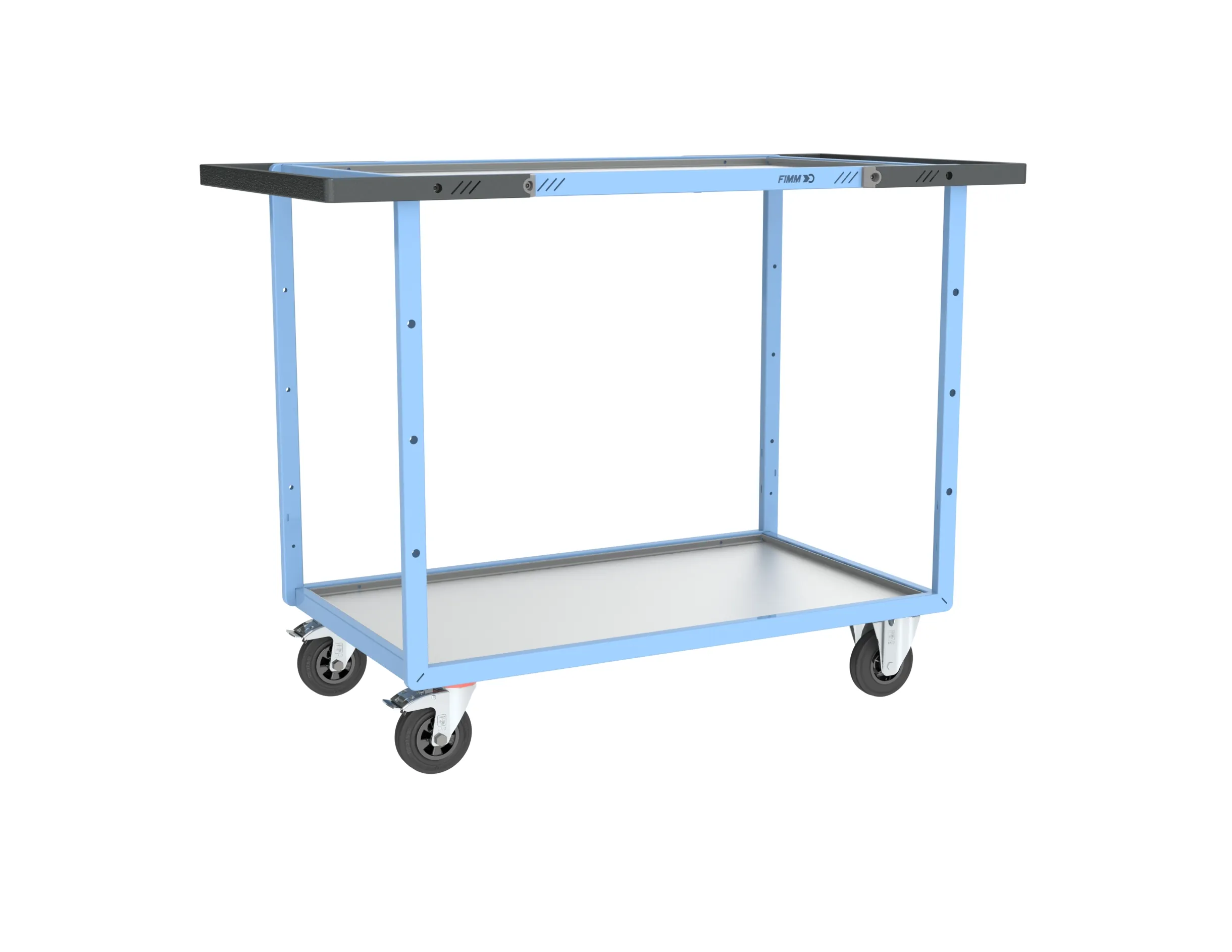 Châssis mécano-soudé conçu pour des utilisations intensives en tube de section 35 x 20 mm avec renforts sous plateaux. Plateaux encastrés. Surface de pose optimisée grâce à une poignée positionnée dans l’alignement du plateau. Charge utile du plateau supérieur (et intermédiaire) limitée à 90 kg. Plateaux tôle galva : épaisseur 2 mm, adaptés aux milieux corrosifs, entretien facile, réversibles (face avec ou sans rebord de 16 mm). Poignée à hauteur ergonomique, en tube 35 x 20 mm pour une bonne prise en main. Double poignées pour permettre une manipulation dans les 2 sens, idéal dans les espaces restreints. Roues caoutchouc : adaptées aux sols lisses, 2 roues fixes + 2 pivotantes à frein conformément à la norme EN 1757. Produit livré prêt à l’emploi : un gain de temps pour les professionnels, sauf poignée à monter.