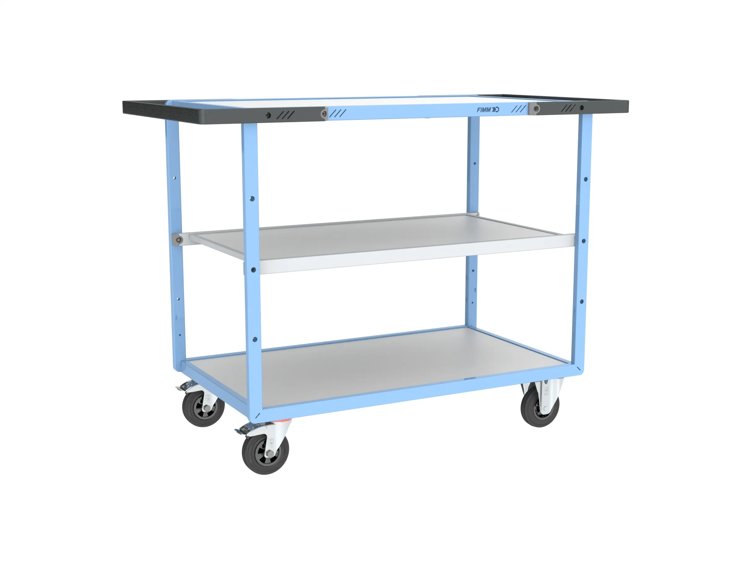 Châssis mécano-soudé conçu pour des utilisations intensives en tube de section 35 x 20 mm avec renforts sous plateaux. Plateaux encastrés. Surface de pose optimisée grâce à une poignée positionnée dans l’alignement du plateau. Charge utile du plateau supérieur (et intermédiaire) limitée à 90 kg. Plateaux bois mélaminé : épaisseur 16 mm, entretien facile. Poignée à hauteur ergonomique, en tube 35 x 20 mm pour une bonne prise en main. Double poignées pour permettre une manipulation dans les 2 sens, idéal dans les espaces restreints. Roues caoutchouc : adaptées aux sols lisses, 2 fixes + 2 pivotantes à frein conformément à la norme EN 1757. Produit livré prêt à l’emploi : un gain de temps pour les professionnels, sauf plateau du milieu et poignée à monter.