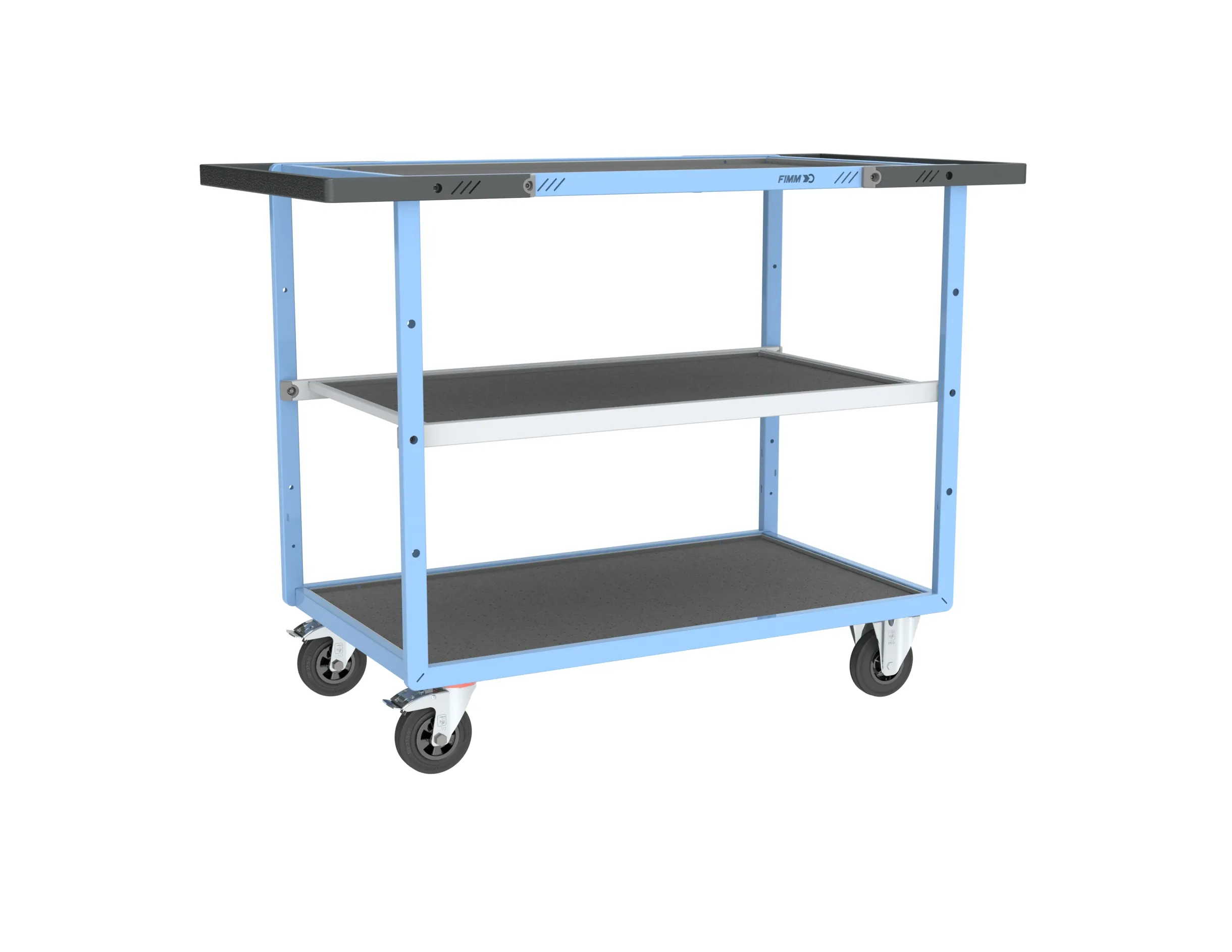 Châssis mécano-soudé conçu pour des utilisations intensives en tube de section 35 x 20 mm avec renforts sous plateaux. Plateaux encastrés. Surface de pose optimisée grâce à une poignée positionnée dans l’alignement du plateau. Charge utile du plateau supérieur (et intermédiaire) limitée à 90 kg. Plateaux tôle galva avec tapis caoutchouc régénéré : tôle épaisseur 2 mm adaptée aux milieux corrosifs, entretien facile, avec rebord de 16 mm. Tapis caoutchouc d’origine recyclé, épaisseur 10 mm, non collé afin de faciliter le nettoyage du plateau. Insonorisant, résistant aux produits chimiques et à la chaleur. Poignée à hauteur ergonomique, en tube 35 x 20 mm pour une bonne prise en main. Double poignées pour permettre une manipulation dans les 2 sens, idéal dans les espaces restreints. Roues caoutchouc : adaptées aux sols lisses, 2 roues fixes + 2 pivotantes à frein conformément à la norme EN 1757. Produit livré prêt à l’emploi : un gain de temps pour les professionnels, sauf plateau du milieu et poignée à monter.